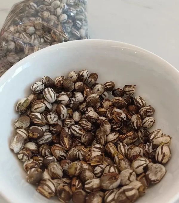 很多地方民间历来都把“洋剌罐”当零食,或抓一把直接放在火上烤,或在锅里焙炒,吃起来有一股特殊的鲜香。就是开“罐”麻烦点儿,得用石头、锤子砸,或是钳子夹开。