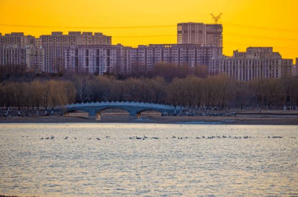 湿地公园,天鹅蹁跹。作为北京城南最大的湿地公园,初春时节,向北迁徙的头一批近百只白天鹅飞抵南海子公园水域补充食物和体能。野生白天鹅的到来,携带着春天,共同为南海子公园带来了新一年的生机与活力。