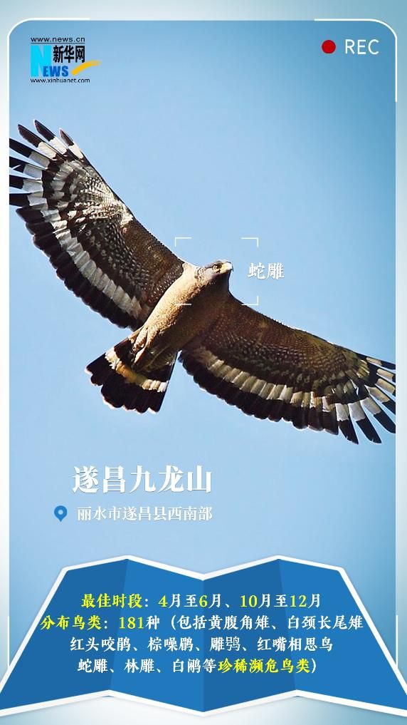 “绿水逶迤去,青山相向开”,厚植绿色生态底色的浙江,是我国12个生物多样性分布中心的重要区域,也处于全球主要候鸟迁徙路线之上,孕育着丰富的野生鸟类资源。截至2022年底,浙江省已记录到野生鸟类581种,其中国家一级重点保护鸟类29种。在此基础上,浙江打造出有众多“国宝”聚集的12个观鸟胜地。