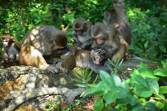 猕猴从低丘到3000-4000m高海拔、僻静有食的各种环境都有栖息,是我国现存灵长类中对栖息条件要求较低的一种。猕猴多栖息在石山峭壁、溪旁沟谷和江河岸边的密林中或疏林岩山中,属群居性动物。一般都有十多头、数十头或者一百多头集群生活,猴群大小与栖息地的环境优劣而有别。繁殖和缺食季节,往往集群大一些,活动范围也较大。