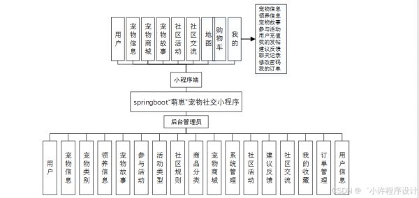 系统功能概览“萌崽”宠物社交小程序涵盖了丰富的功能模块,为用户提供一站式的宠物社交体验。以下是系统的主要功能: