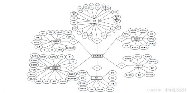 E-R图,也被称为实体-联系图 (Entity Relationship Diagram),是一种提供了表示实体类型、属性和联系的方法,用来描述现实世界的概念模型。它由三个主要元素组成:实体、属性和联系。在系统中对一些主要的几个关键e/r实体“用户、订单、宠物商城、社区交流、健康资讯、购物车”如图4-2所示。