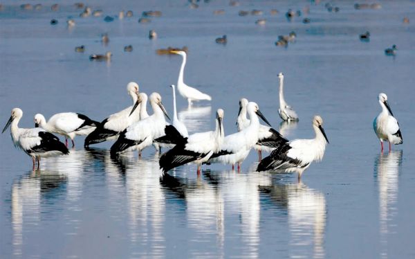 2023年,国家一级保护野生动物东方白鹳在崇明东滩的记录数量创历史新高,野生丹顶鹤首次来到长江以南的东滩保护区越冬,疣鼻天鹅、粉红燕鸥、欧柳莺等罕见鸟类也先后现身东滩保护区。