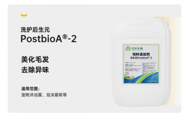 后生元PostbioA®-2洗护焕新产品广泛应用于宠物清洁用品、护理产品、美容产品、消毒抑菌抗菌类产品及除臭产品等领域,重塑皮肤微生态平衡,通过调节皮肤微生态,增强皮肤屏障功能,显著提升宠物抗皮肤病能力,由内而外滋养毛发亮泽度,同时有效减轻宠物体味,营造良好的卫生环境。