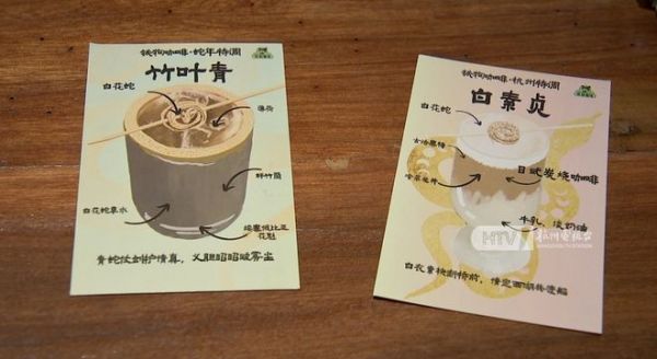 位于邮电路上的这家咖啡店,之前就因为西湖醋鱼咖啡火出圈。前两天,店里又推出了两款以白素贞和小青为主题的蛇干咖啡。