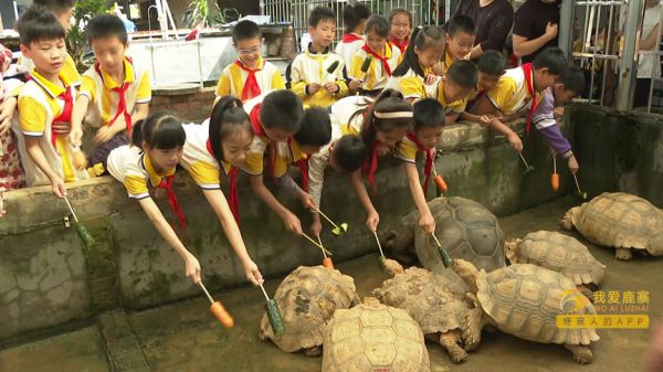 这群特殊的客人是鹿寨县城南实验小学三年级10班的同学和家长们。大家在该基地负责人和工作人员的引导下,开展研学实践活动,听讲解,观赏、喂食乌龟,跟乌龟嬉戏,玩得不亦乐乎。在活动中,同学们了解到了龟的种类、生活习性、生物特征、身体构造、价值等。