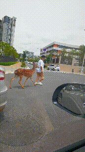 昆明一男子街头遛梅花鹿……网友:大象孔雀过时了?