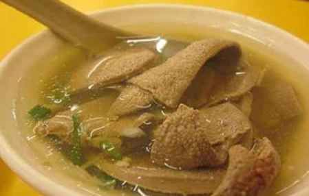 3.将猪肝片放进已煮好的猪骨汤内煮熟,加进味料调味,待温时吃猪肝喝汤。