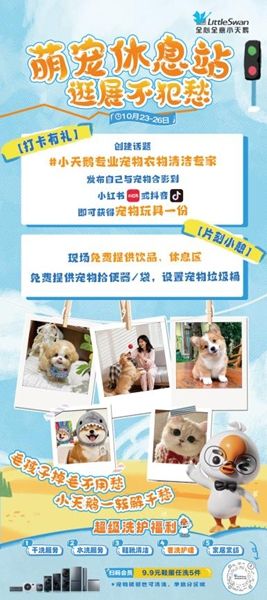值得关注的是,海尔、小天鹅(美的旗下)、京东等行业品牌也将携专属亮点亮相。海尔带来首创四筒洗衣机,以独立四筒分区洗护解决养宠家庭衣物清洁痛点,展位还设趣味互动游戏;小天鹅在E1馆A46展位推出“萌宠净界自在呼吸”主题活动,打卡送宠物零食、设萌宠休息区,更有9.9元洗5件鞋服的超值洗护服务;京东则搭建专属展区,带来全品类宠物商品与限时折扣,为宠主提供一站式购物体验。
