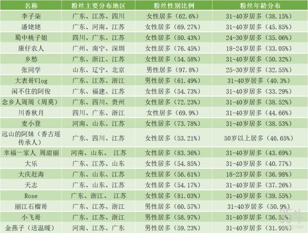 来源:灰豚数据表2:抖音新农人Top20粉丝画像