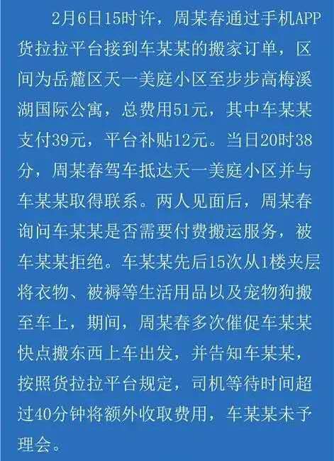 2月6日,女孩通过货拉拉平台预约了搬家订单,总费用需51元,其中女孩支付39元,平台补贴12元。