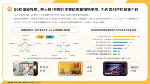 从人群结构看, 00后用户最偏爱异宠,他们更注重个性表达与内容分享,养宠动因不再是传统意义上的陪伴,而是“社交表达/内容创作”和“彰显审美与风格”,在他们眼中,异宠更像是内容主角和个性符号——可以用来拍视频、布置桌面、记录生活,承载着对差异化审美与生活方式的追求,由此也催生出“桌面生态”“景观式养宠”等热销趋势,养宠正逐渐转化为一种可视化的生活表达方式。