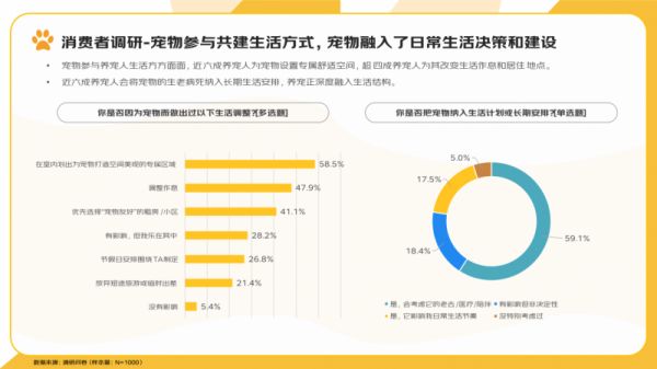 宠物正成为生活共建者,近六成养宠人将其纳入长期生活安排,58.5%的养宠人为其打造专属空间