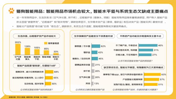 智能养宠热潮涌动,宠物空气净化器搜索量同比飙升202%,六成用户表示“智能程度不够、app生态不互通”为关键痛点