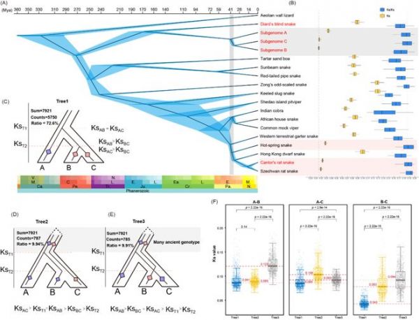 中国科学院成都生物研究所研究发现,钩盲蛇的祖先可能在 4100 万年前经历了两次跨物种“联姻”,意外获得了三套染色体,并通过染色体融合实现了基因组的稳定传递。