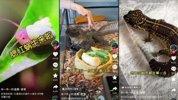 在他的镜头之下,用户得以看到了诸多“神奇动物”的奇妙瞬间:蜜袋鼯学会飞翔、小乌龟四仰八叉“晒肚皮”、新生守宫努力“破蛋而出”、蓝色蜗牛生下一堆小翡翠……通过这些视频,用户不断刷新了自己对物种的认识,好奇心得到满足之余,不少用户也由此萌生了饲养异宠的念头。