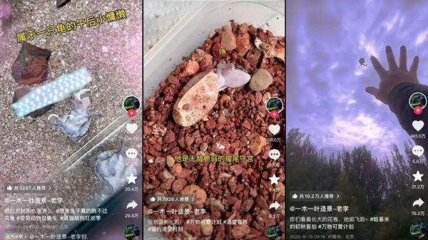 抖音宠物博主@一木一叶造景-老李,原先经营水族用品店,2020年开始在抖音记录自己的神奇动物世界,目前抖音粉丝量接近1200W。