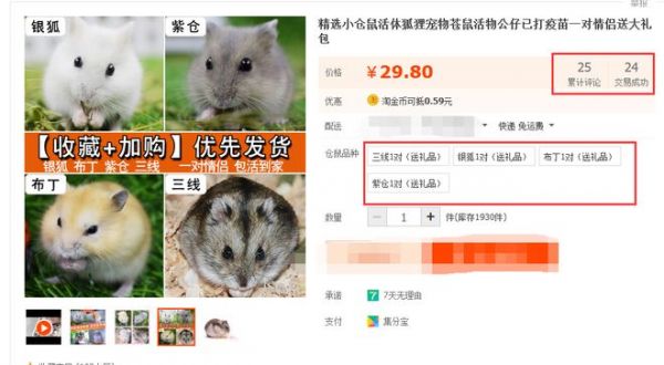在一家出售小仓鼠活体宠物活盲盒的店铺中,记者发现,目前这些活体盲盒已发生25笔交易,其中交易成功数为24笔,且交易时间均为最近一个月。不过,依然有一笔交易显示,消费者下单后收到的是死的仓鼠。
