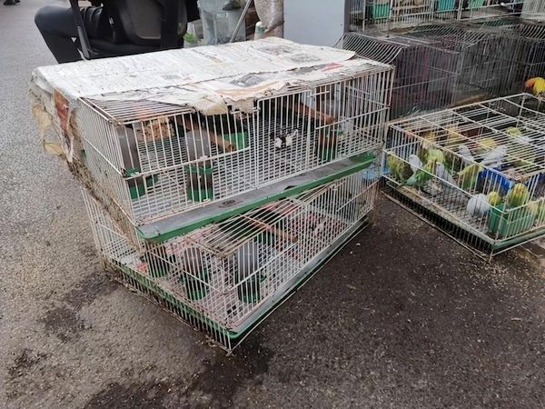 在花鸟摊位,一批野生暗绿绣眼鸟被拥挤地关在笼中,数量有85只之多,而当事人无法提供合法来源证明。经上海市野生动植物鉴定中心鉴定,现场查获的暗绿绣眼鸟属于国家保护的有重要生态、科学、社会价值的陆生野生动物。
