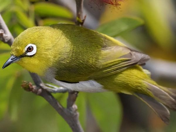 暗绿绣眼鸟俗名绣眼儿、白眼儿等,因其眼圈被一些明显的白色绒状短羽所环绕,形成鲜明的白眼圈得绣眼之名。体小而细弱,背绿色、腹白色。完全树栖生活,取食昆虫、花蜜和甜软的果实;绣眼鸟性情活跃,高度群集,冬季能达50~60只。主要在阔叶林营巢,巢小而精致,为吊篮式,隐藏在浓密的枝叶间,不易发现。每年3~8月间繁殖,多在南方,每窝产3~4枚卵,为纯蓝绿或纯白色,平均重1克。