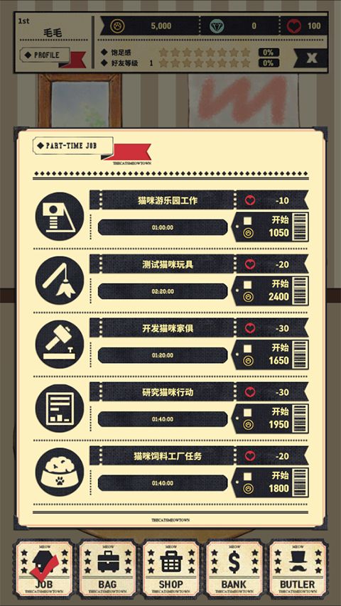 获得猫咪的爱心,就可以打更多的工。
