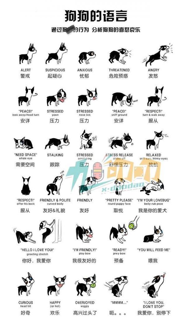 下面的图片,教你通过狗狗的行为动作,来分析宠物犬心里在想什么: