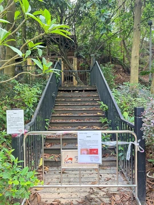 12日早上,记者来到合景天俊小区,发现小区内东北部有一座大约2万平方米的山体公园,山体公园内设有绿道,已被围挡禁入。