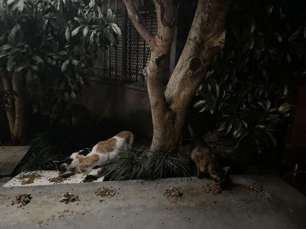 碰到一对常年在这喂流浪猫的夫妻