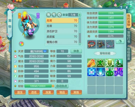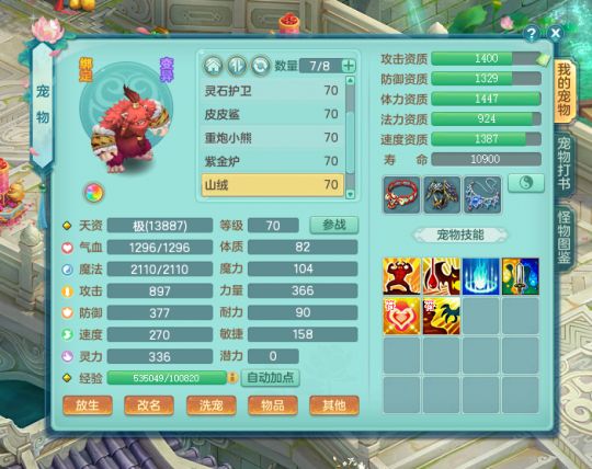 宠物的攻击资质、防御资质和体力资质比较关键,建议用元宵补满。