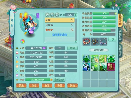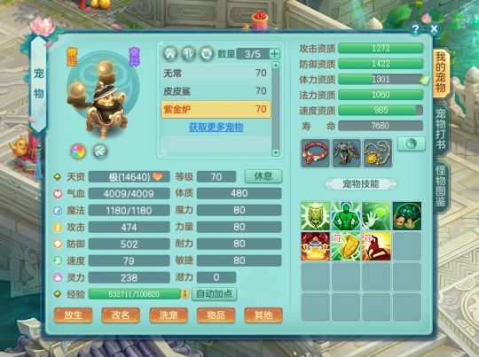 1、紫金炉独特的定位与特殊技能使其到了高级也有一战之力,可从65级用到150级,且所需兽诀也不贵,值得全高书培养;