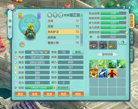 1、前期积攒的还童丹可适当投入在灵石护卫上,尽量追求一下变异满技能,在95级解锁蒲牢之前灵石护卫都会是挑战生肖的利器;
