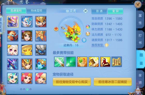 洗出至少一只攻击老虎,配合系统送的6技能,再把不如意的宝宝做卡速,我们就可以开始存还童丹和通灵符资源等待龙虾了。