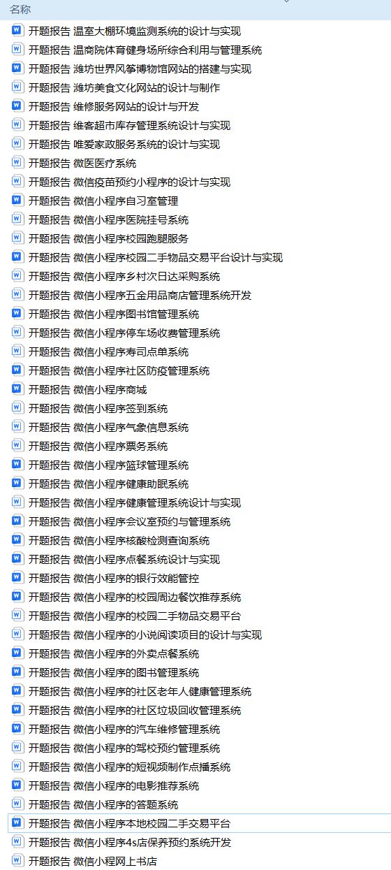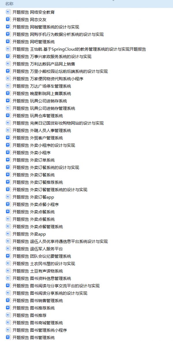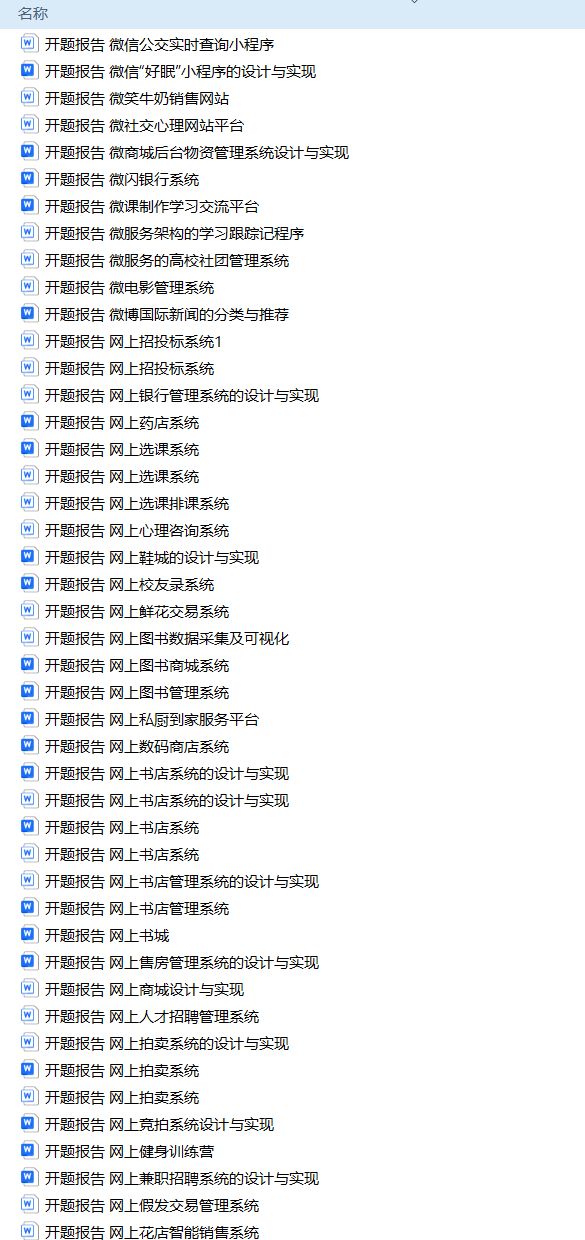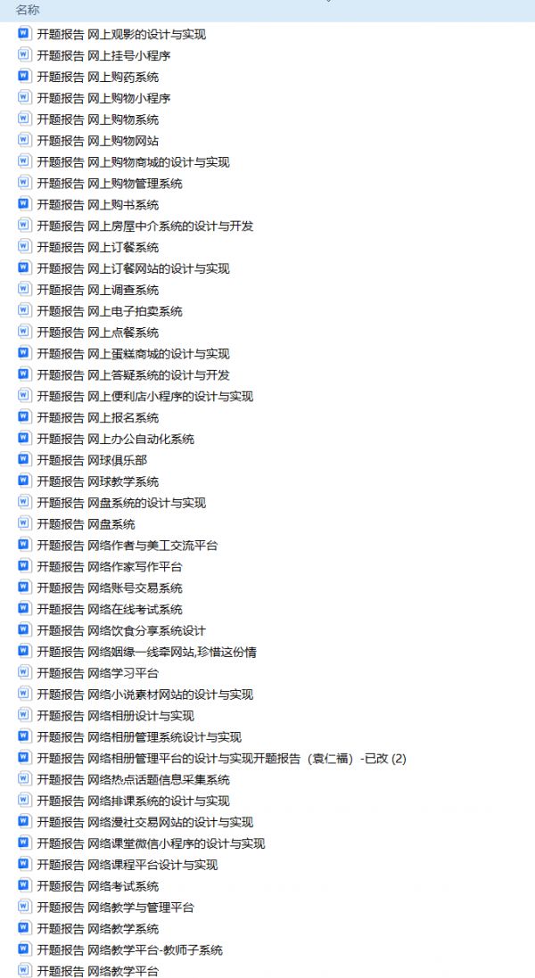 以上是H同学的毕业设计答辩过程,如果你现在还没有参加答辩,还是开题阶段,已经选好了题目不知道怎么写开题报告,可以下面找找有没有自己符合自己题目的开题报告内容,列表中的开题报告都是往届真实的开题报告可参考。