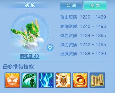 如蛟龙按图鉴上显示最高是6技能,洗到6技能意味着该宠物必定是变异宠,也有较大概率伴随少侠升级也能一直使用。