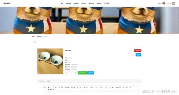 商品管理:用户可以浏览宠物商品,进行购买、评论、收藏等操作。