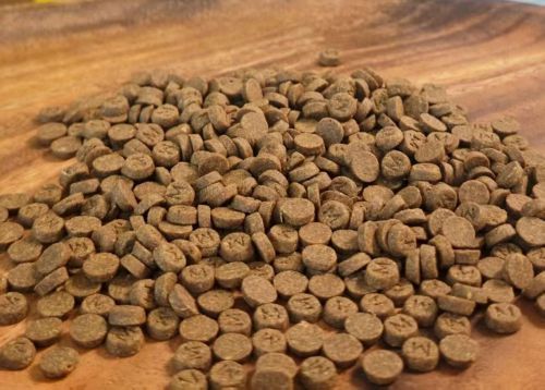 纯福的“蓝袋子”一眼就能认出来——1.5 kg小包给尝鲜,7.5 kg大包给囤货,按狗狗胃口随取随用即可。配方只用鸡:鲜鸡肉+鸡肝+鸡心,实测粗蛋白35%、粗脂肪15%,蛋白脂肪比约7:3。先酶解、再低温烘焙:酶解把大分子动物蛋白切成小分子肽,降低过敏风险,也减轻肠道负担;80 ℃左右低温烘烤,锁住肉香和微量元素,颗粒像腰果般弯弯一条,大小均匀,入口“咔哧”脆,不挂油,喂完碗底不反光。