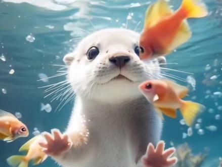 今天去海底和鱼儿去玩耍啦#水獭宝宝 #萌宠出道计划 #小动物们能有多治愈 #萌到爆炸了