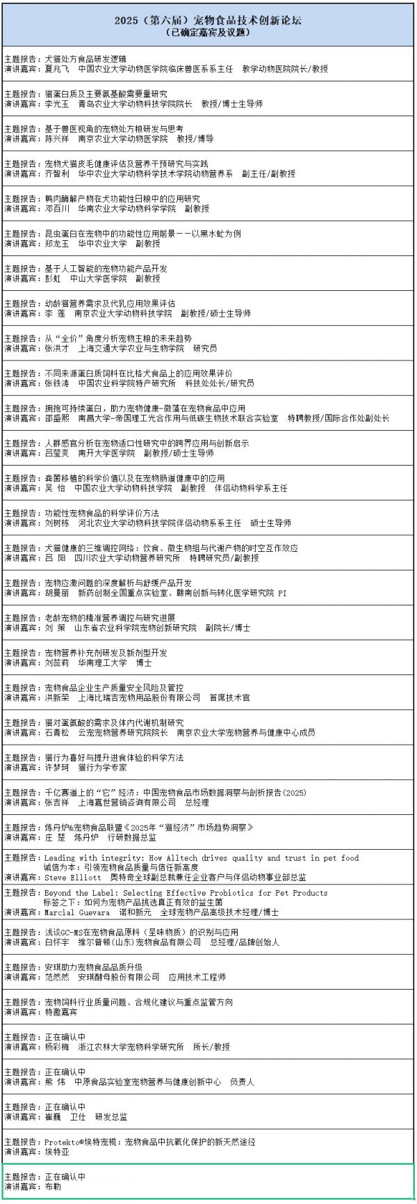 【会前预告】2025(第六届)宠物食品技术创新论坛专题预告
