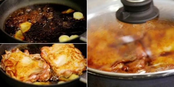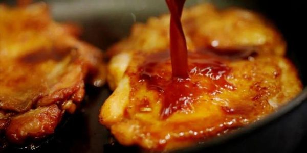 煮好以后,如果锅中水还比较多,开大火将酱汁收一收,并用小勺不断舀起酱汁倒在鸡排上。这样美味的蜜汁鸡排就煮好了。