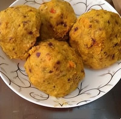 蒸好的胡萝卜、土豆、南瓜捣成泥状。