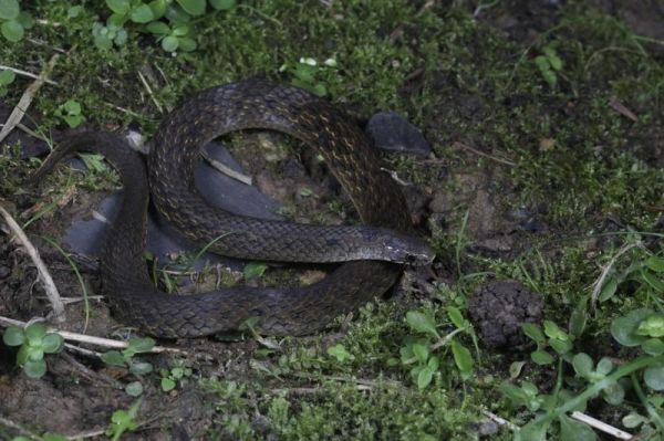 调查数据显示,华西颈斑蛇具有典型的日行性特征,属于小型无毒蛇类,主要以蚯蚓和蛞蝓为食。其颈部有独特的倒“V”形斑纹,背部呈橄榄色。