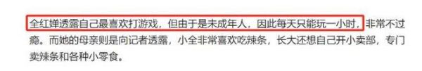 16岁,正值爱玩的年纪,全红婵曾表示自己非常喜欢玩王者、吃鸡等游戏,由于未成年全红婵只能每天玩一个小时。原先全妹的愿望是长大了开小卖部,专门卖辣条和各种小零食。不过,如今这个愿望估计“无法”实现了,谁叫自己在跳水方面天赋异禀呢?