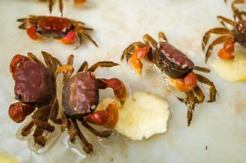 1. 小螃蟹:当你的螃蟹还比较小的时候,可以一天喂1-2次,每次喂食量别太多,因为小螃蟹本身的食量就是比较少的。