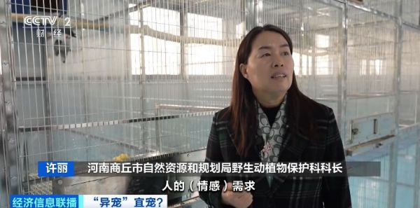 河南商丘市自然资源和规划局野生动植物保护科科长 许丽:随着社会经济的发展,人的情感陪伴这方面的需求越来越多,尤其是年轻人群体的需求,所以市场需求量很大,是最近新兴的一个市场。