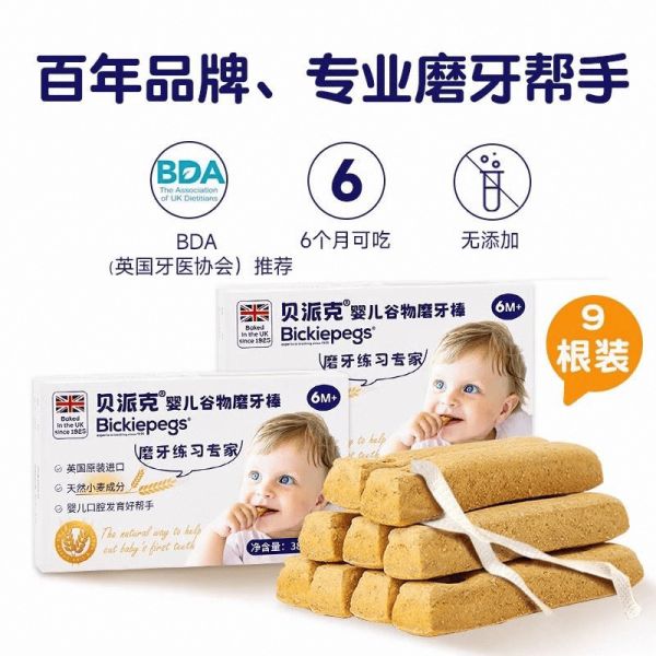 牙齿健康小卫士:贝派克磨牙棒6M+,一盒45根,宝宝出牙期的好帮手。每根磨牙棒都是用38克苏格兰高地优质天然小麦制成,硬度适中,尺寸大小刚刚好,宝宝啃起来既安全又舒服。这可不是吹牛哦,国家婴幼儿谷物辅助食品安全标准GB 10769都给认证了!