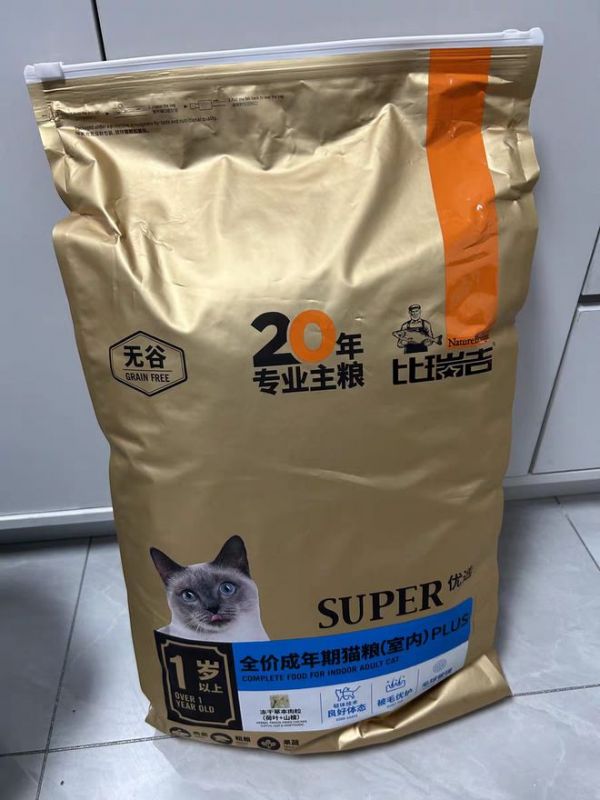比乐的十种鱼配方猫粮鲜味特别足,还添加了冻干生骨肉碎,特别适合挑食的猫咪。