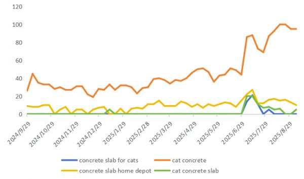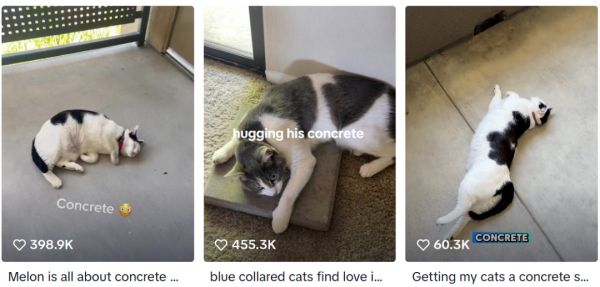 当毛孩子们在粗糙冷硬的混凝土上磨爪、打滚、眯眼陶醉,铲屎官们纷纷举起手机记录这“反差萌”现场。视频在TikTok上迅速发酵,“cat concrete”(猫混凝土)相关搜索量短期内激增了超过350%,相关视频观看量轻松突破百万。