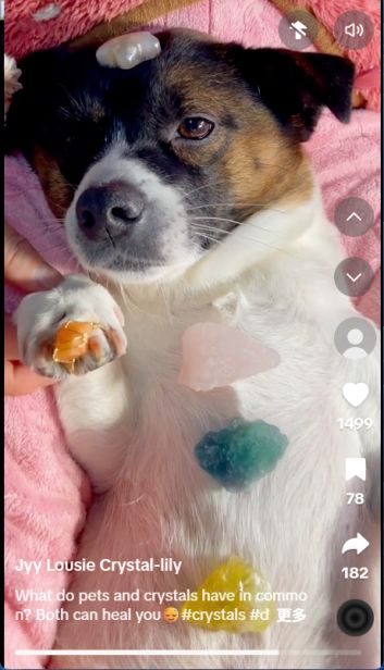 在TikTok上,还有不少宠物主分享给自家猫狗做水晶“疗愈”的片段,懵懂的狗狗被水晶包围,沉醉的猫猫狂吸水晶版“猫薄荷”,迅速引发了热潮。于是,在TikTok美区,水晶宠物项圈热度高涨,单月销量突破3500件,成了宠物类目与水晶类目的双重爆款。
