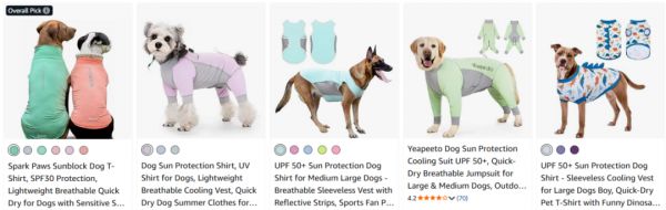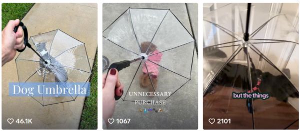 ·狗狗防晒衣与反向遛狗伞:风雨无阻的遛狗人,在自己防晒防雨的同时,也希望身边的毛孩子能同样舒适。因此,各类狗用防晒衣、防晒霜获得了不错的市场反响,专为遛狗人设计的反向雨伞也以其独特的设计,收获好评。