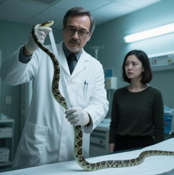 "这是您养的宠物蛇?"刘医生问道,声音中带着一丝不确定。